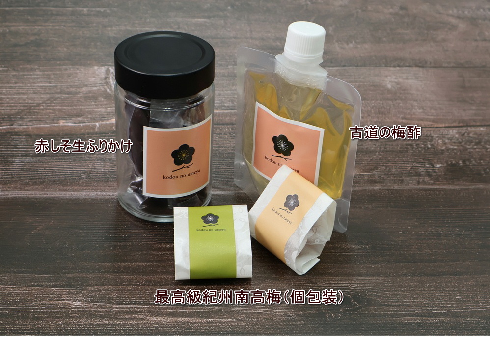 各セット、赤しそ生ふりかけと梅酢は変わりませんが、梅干しが変わります。