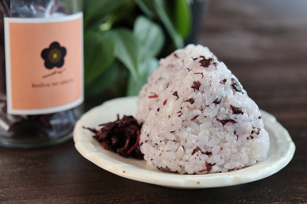 紀州の梅酢で仕込まれて香り高く仕上がっており、赤しそごはんや赤しそおにぎりは絶品です。